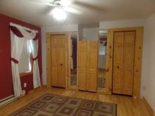 Cedar siding. Roof shingles new in 2011/2012. Back wood deck.